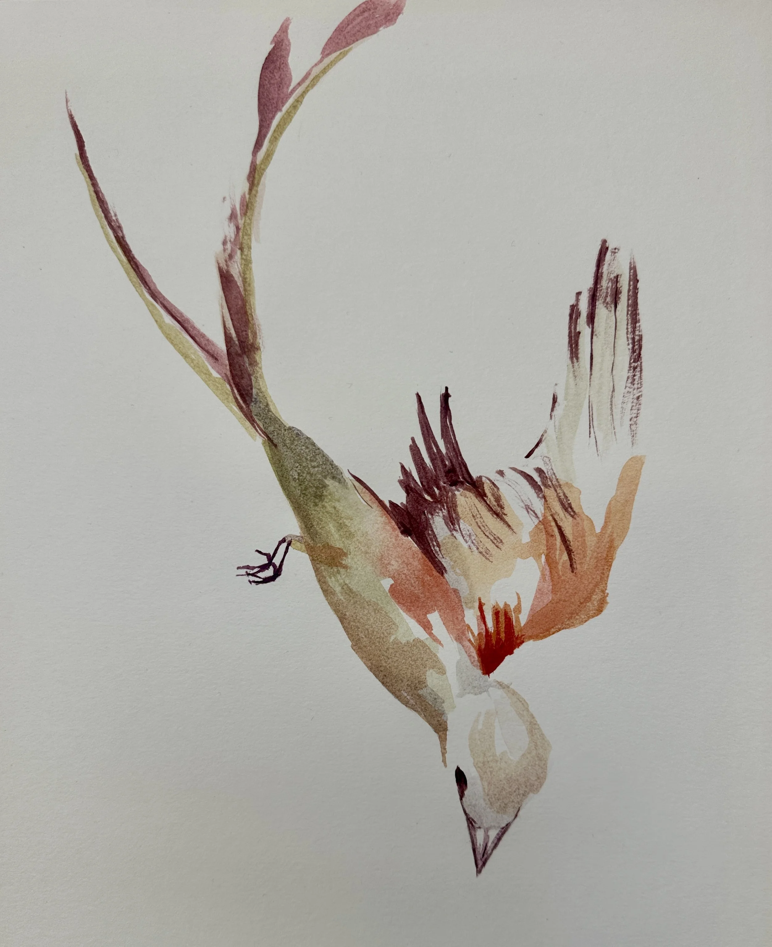 Lilou Melville is a painter based in Surrey. Her work derives inspiration from investigating the relationship between natural living beings. Recently her work has transformed to be centred around birds and capturing the motion of their flight in abstract methods.